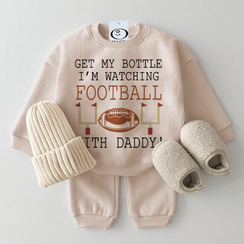 GET MY BOTTLE I'M WATCHING FOOTBALL WITH DADDY Baby Beige 2-Piece Set