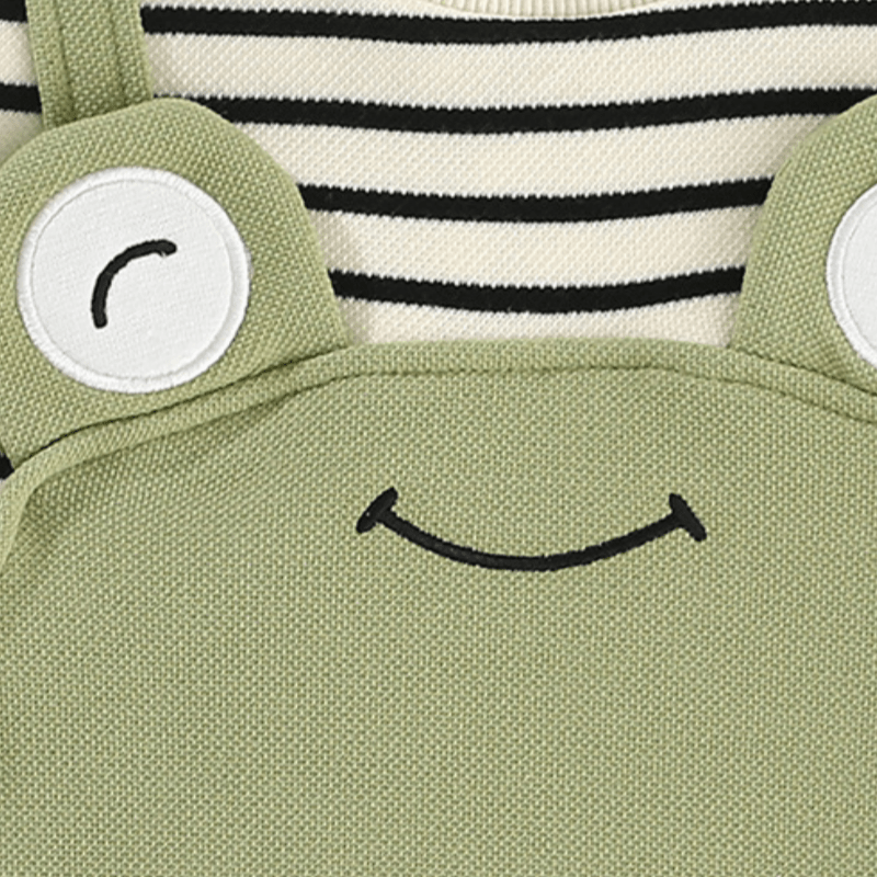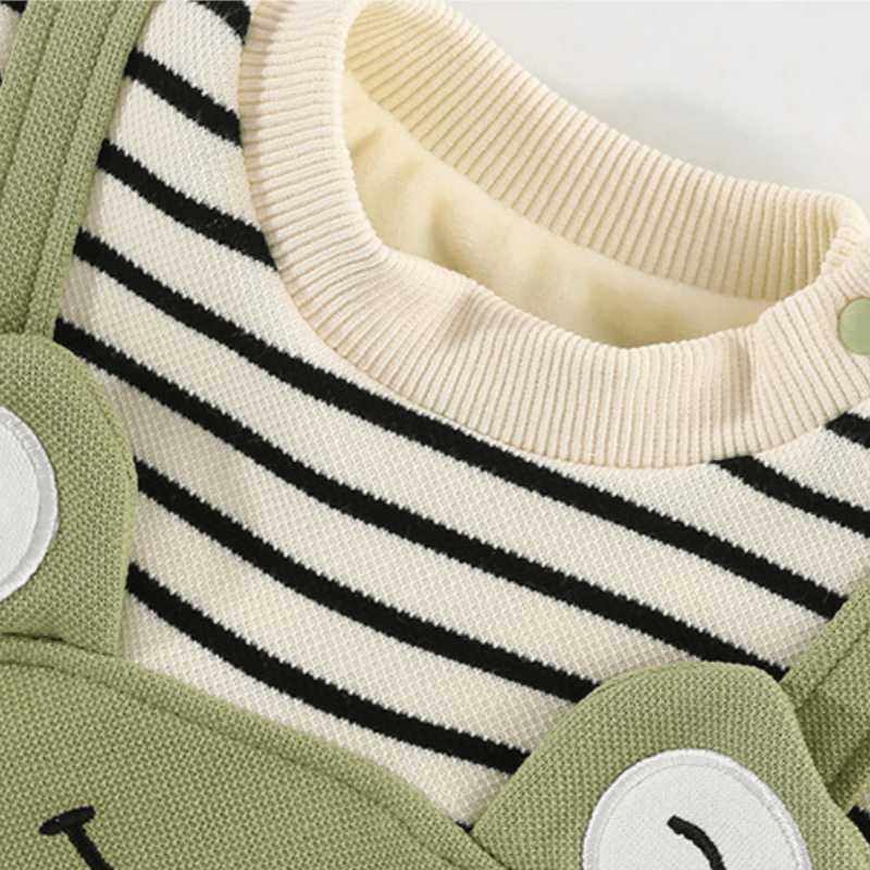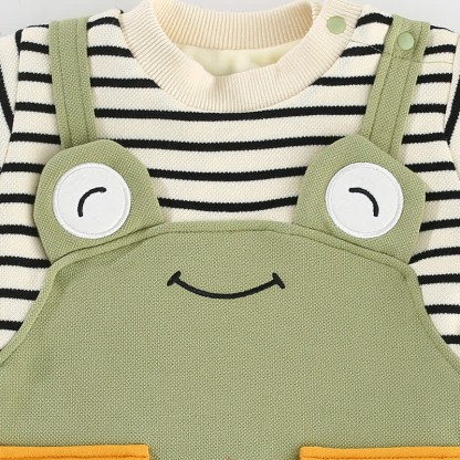 Baby Stripes Frog Green Romper