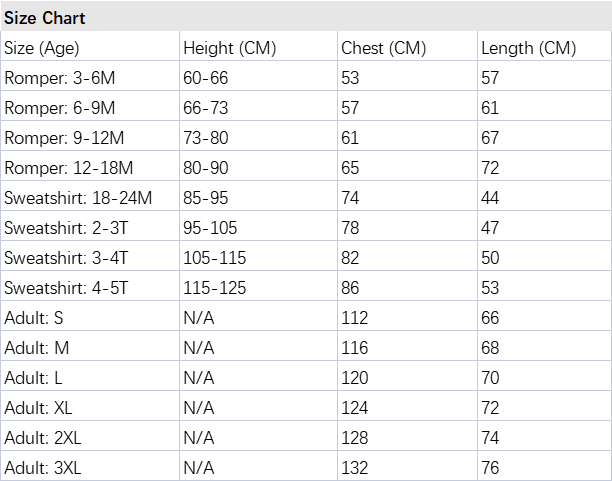 *The parcel only contains the romper or sweatshirt. Other pieces or accessories shown are only used for photo props.