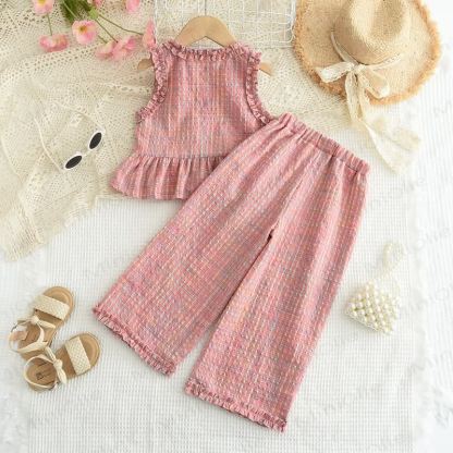 Toddler 2-Piece Pink Plaid Sleeveless Casual Set