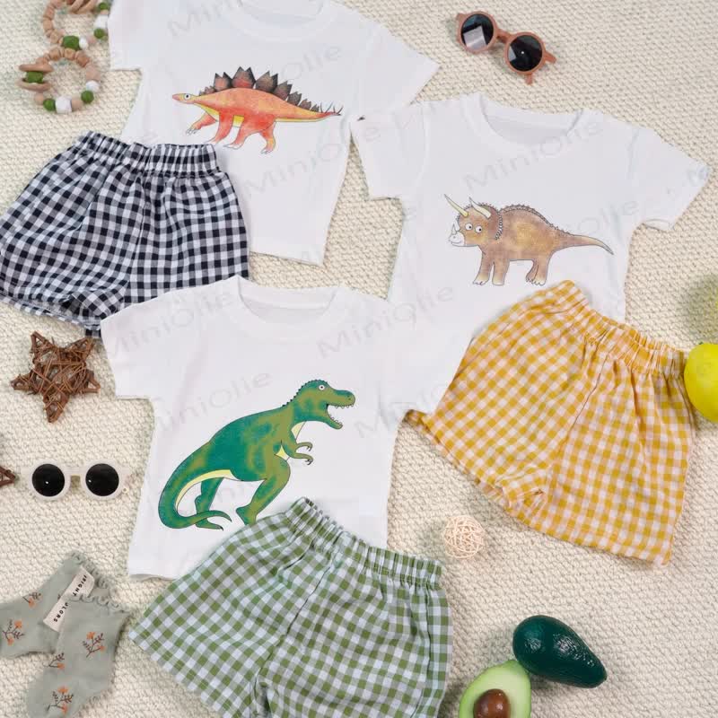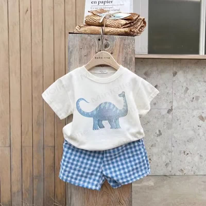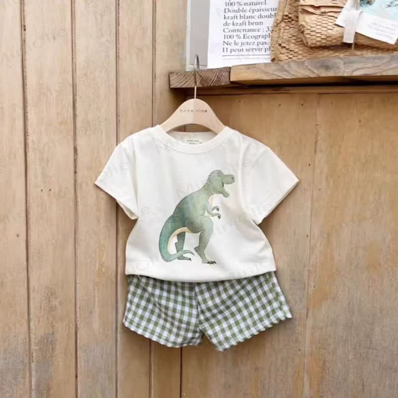 Toddler Dinosaur Tee and Plaid Shorts 2-Piece Set